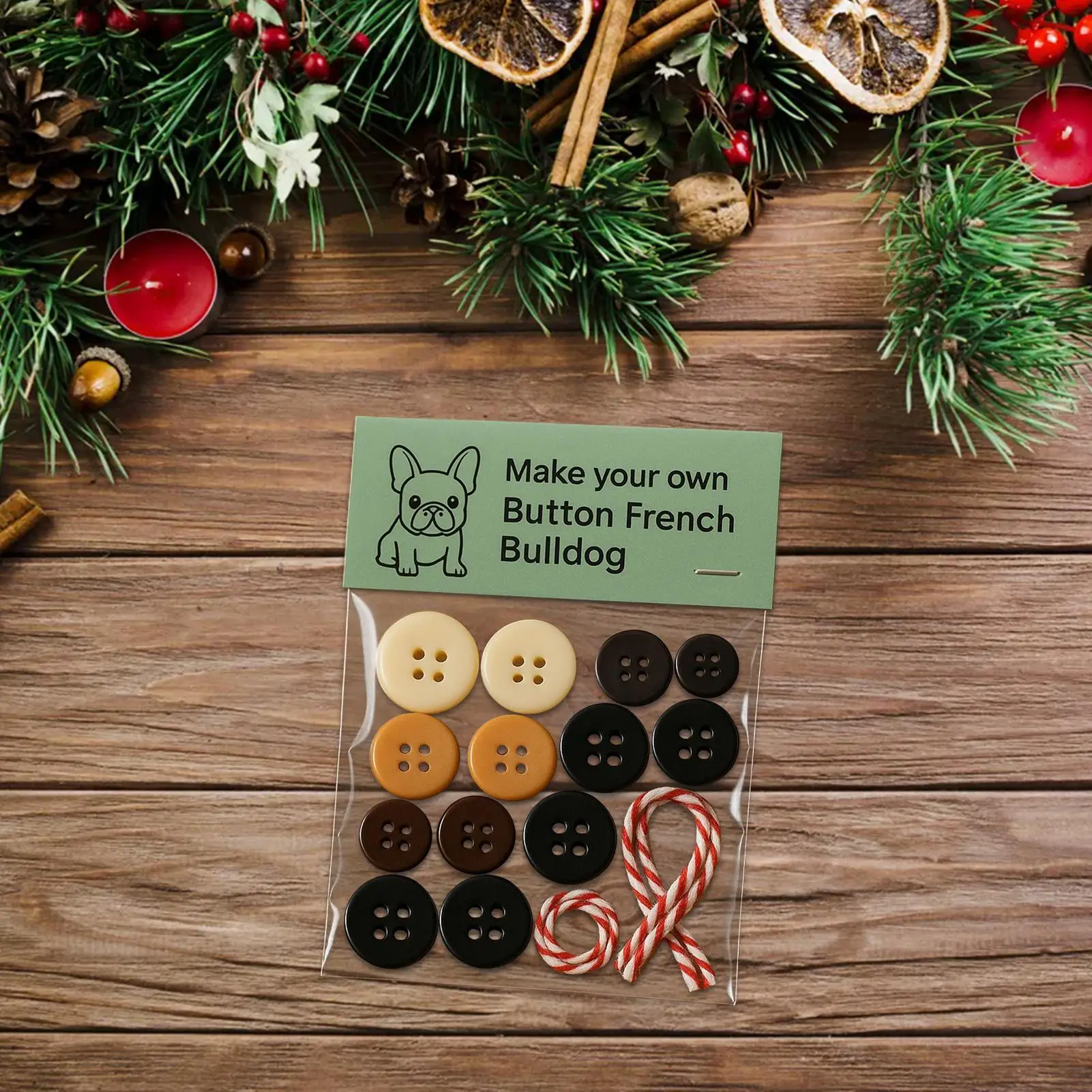 French Bulldog Christmas Button Ornament – Handmade Craft Kit
